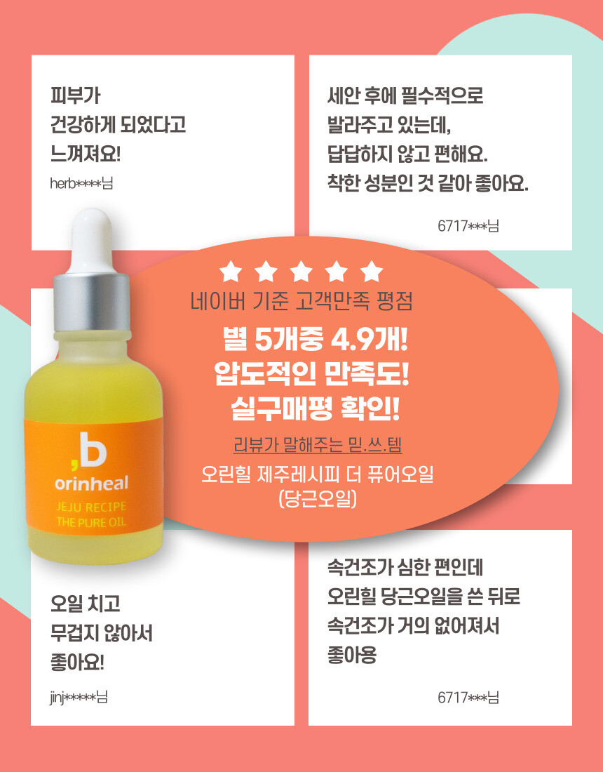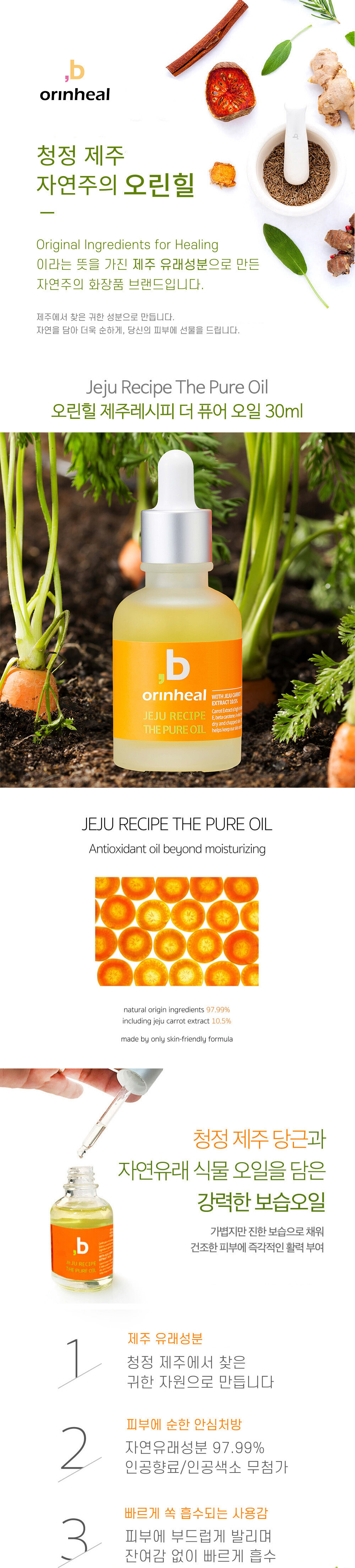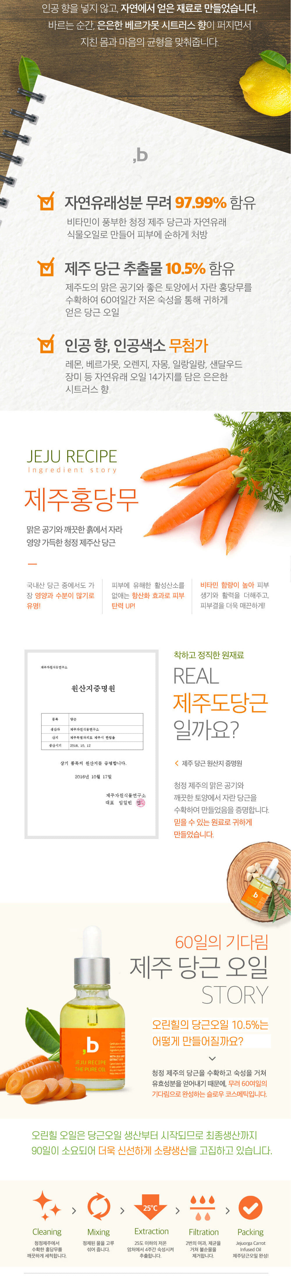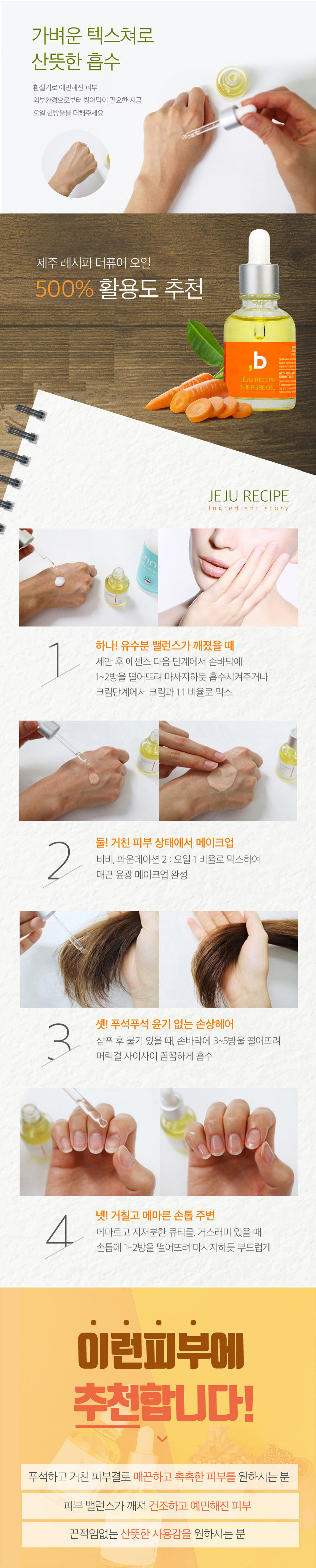 당근오일 - 제주레시피 더 퓨어 오일 - 비건인증 피부저자극테스트 완료