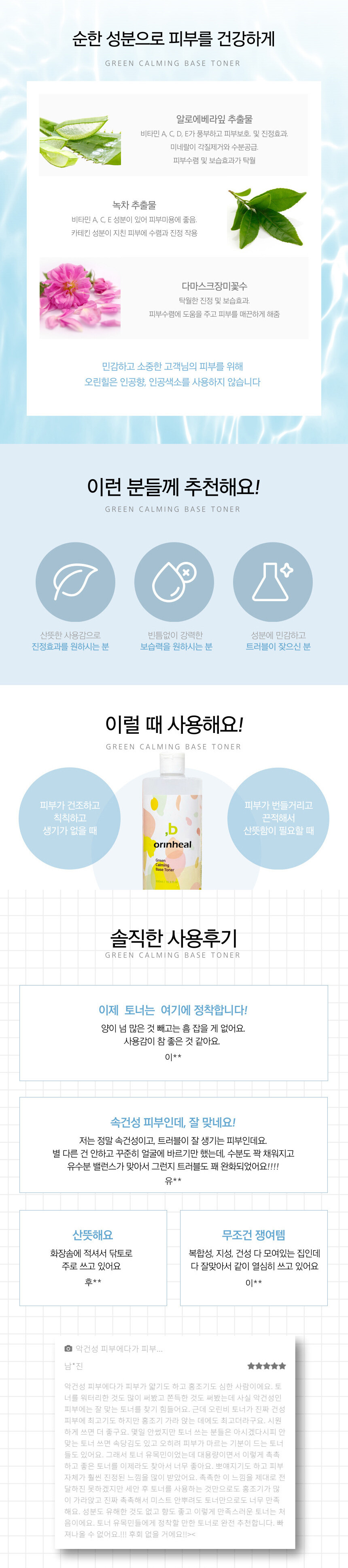 그린 카밍 베이스 토너 (두가지 용량) - 비건인증 피부저자극테스트 완료