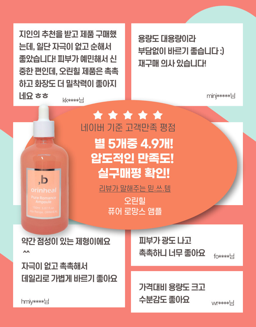 퓨어 로망스 앰플 (대용량) - 비건인증 피부저자극테스트 완료