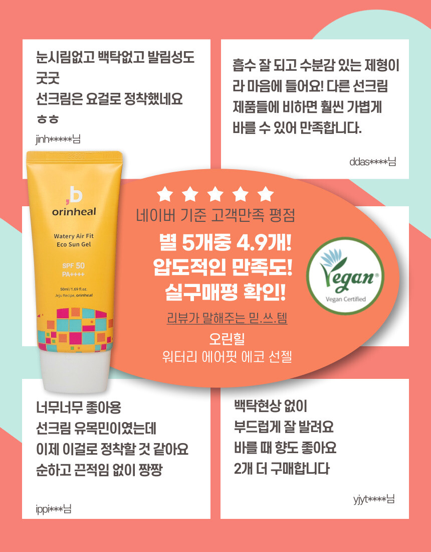 워터리 에어핏 에코 선젤 - 비건인증 피부저자극테스트 완료