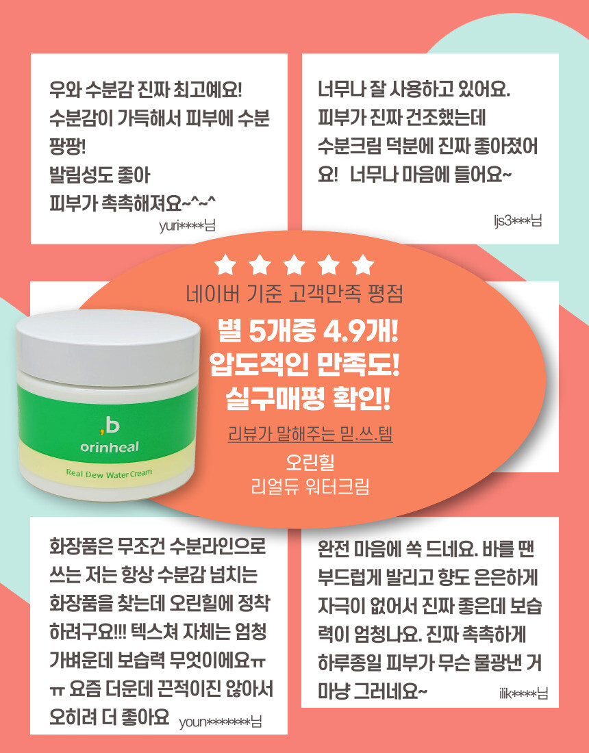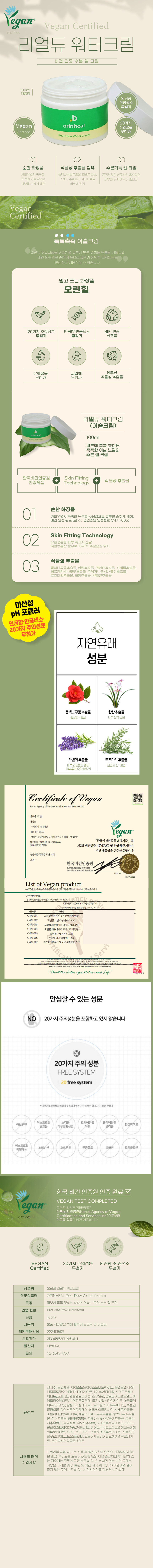 리얼듀 워터크림(이슬크림) - 비건인증 피부저자극테스트 완료